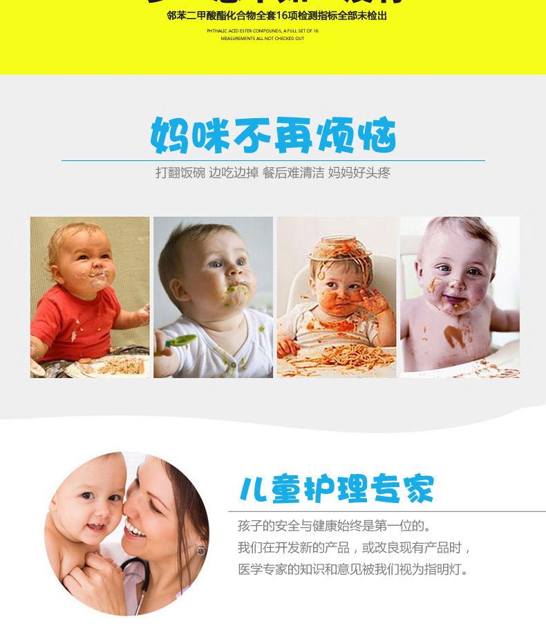 3、防水抗菌餐垫,卡通图案让宝宝享受快乐的用餐环境,不用担心餐桌或者其他地方的细菌会感染给宝宝,妈