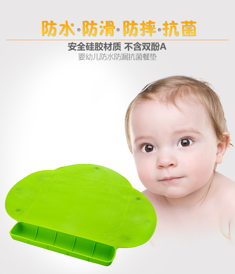 3、防水抗菌餐垫,卡通图案让宝宝享受快乐的用餐环境,不用担心餐桌或者其他地方的细菌会感染给宝宝,妈妈安心!
