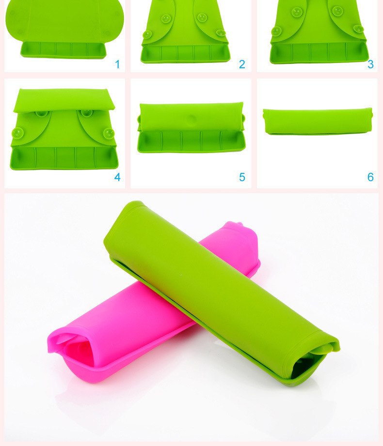 6、用水直接冲洗即可,硅胶材质不会与任何物质发生反应,油腻的菜汤也只需要冲洗,简单冲洗后,只需要轻松抖动,水滴就会掉落,无需晾干便于收纳