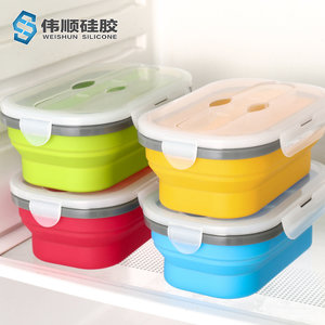 - 硅胶折叠饭盒,硅胶伸缩便当盒,硅胶耐高温饭盒