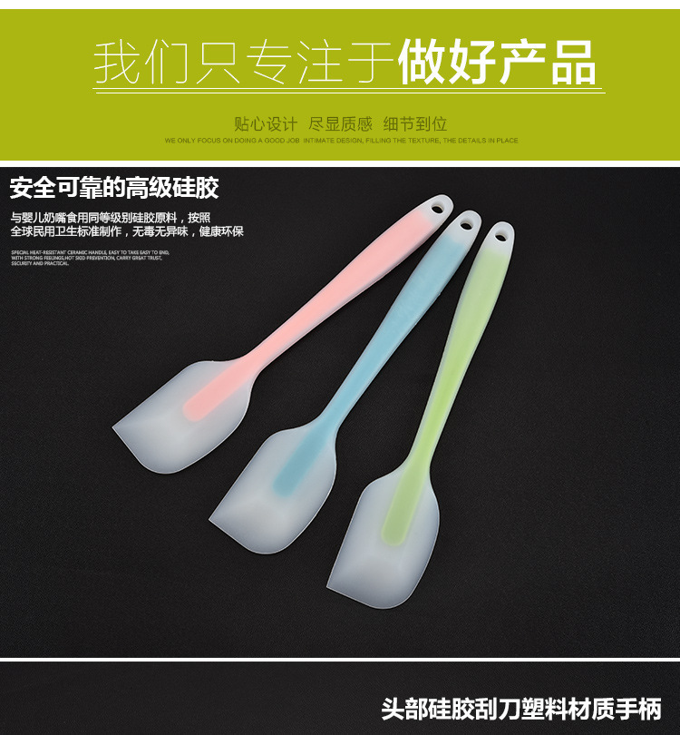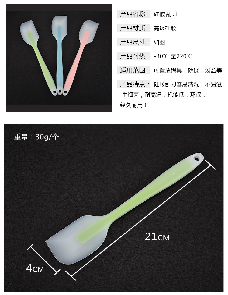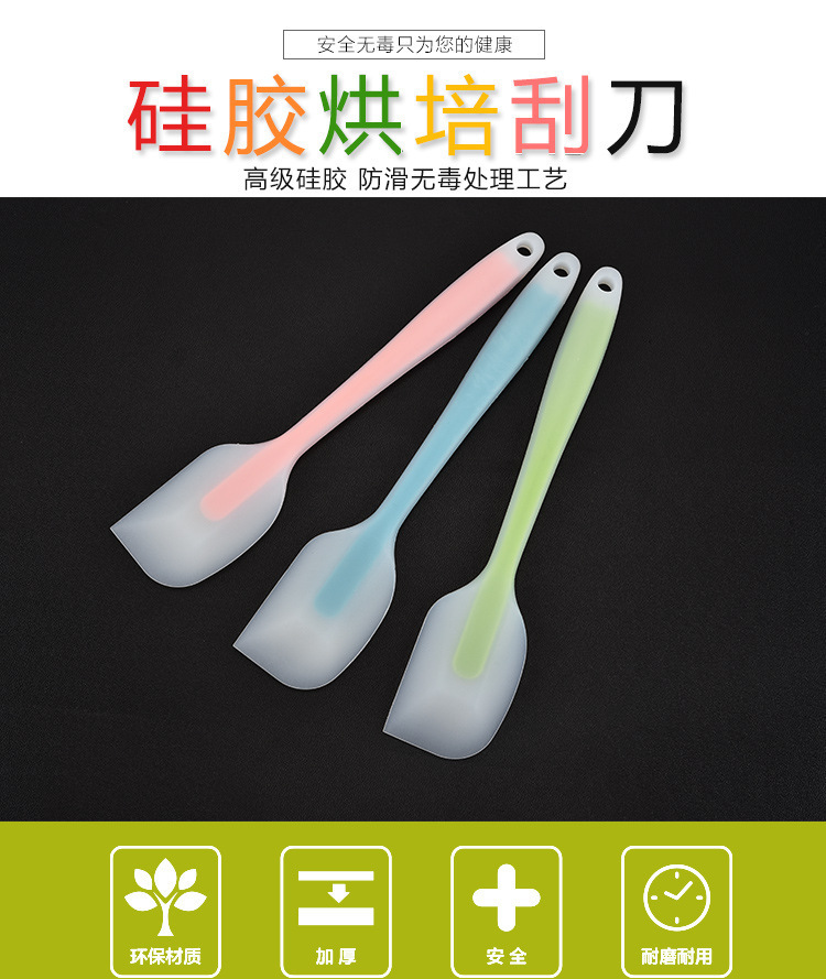 1、硅胶刮刀容易清洗,不易滋生细菌,耐高温,耗能低,环保,经久耐用