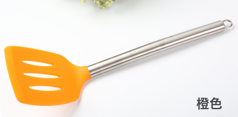 - 不锈钢柄硅胶漏铲,不锈钢长柄硅胶漏铲,不锈钢空心炒菜漏铲