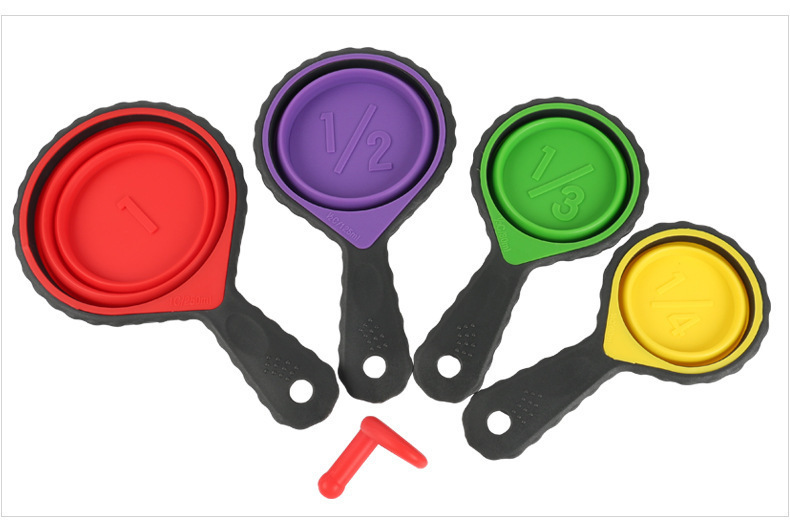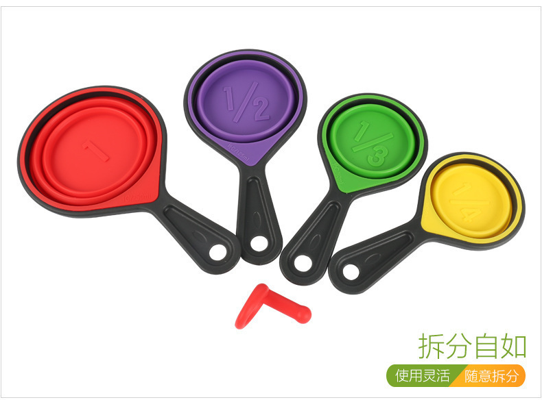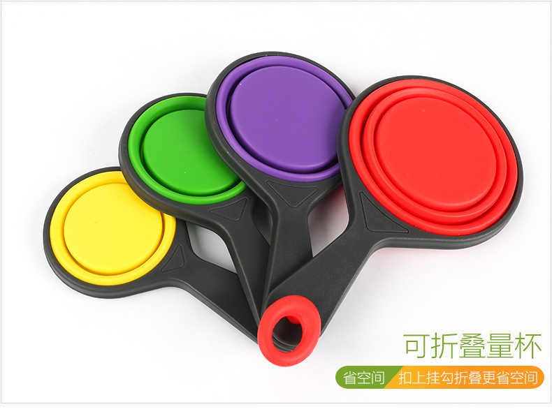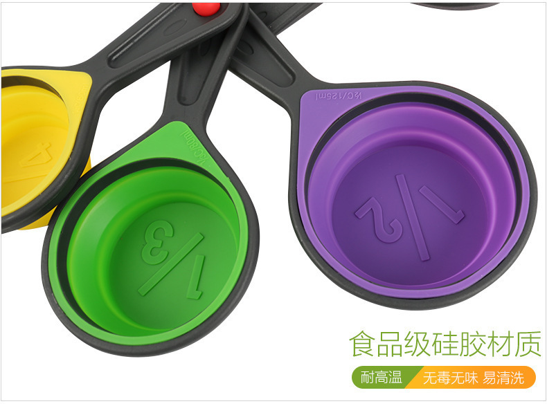 • 硅胶折叠量杯套装,硅胶量杯四件套,硅胶折叠量勺4件套