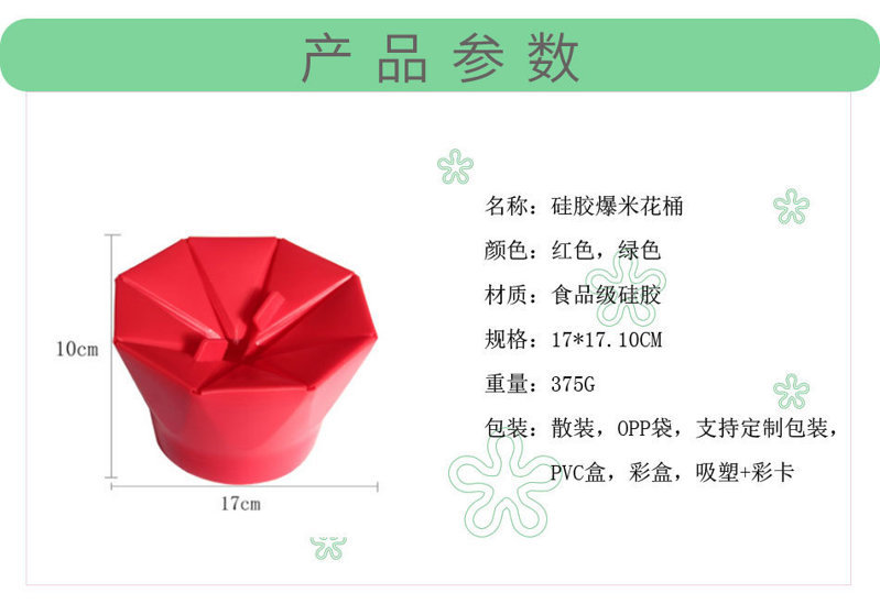 产品用途:适用于微波炉、冰箱,可重复使用的家用爆米花桶。