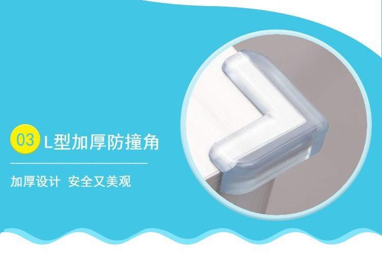 【适用范围】: 安全又美观,即让宝宝和您的家人免受碰撞之苦,同时又不妨碍家具整体造型。适用于一般家庭中的桌角/床角/书柜/玻璃茶几/楼梯角等容易产生危险的位置