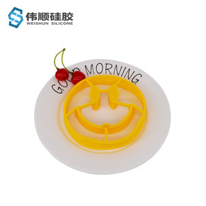 产品实拍细节图,我司笑脸煎蛋器每个重量达到50G以上独家正品,不是市面上为了减少成本,把煎蛋器改小做薄使用普通原材料生产。我司所有产品都是以环保食品级硅胶生产出来质量达到FDA/LFGB标准。